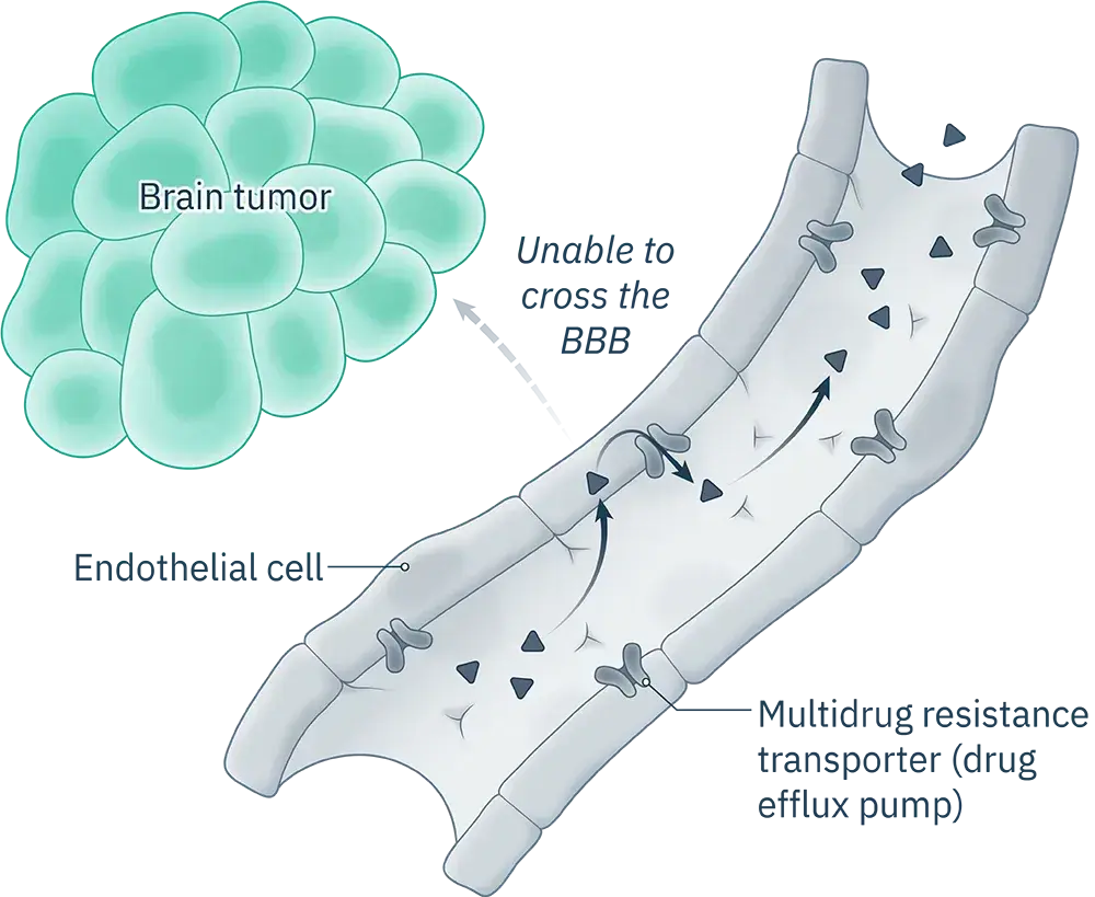Anthracyclines are not able to cross the tightly packed layer of cells that line the blood vessels in the brain. This is known as the blood-brain barrier and it's there to protect your brain from harmful substances. For people with GBM, this means anthracycline treatments are not used to treat their cancer.